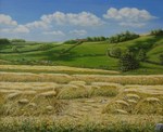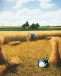 1986Het binden van de oogst door de vrouw,met twaalfuurtjeop de voorgrond.