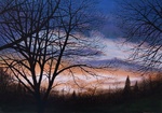 2009Zonsondergang in winter, zonsondergang op een groter paneel en een breder uitzicht.