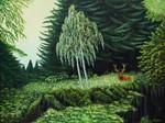 2013Een verzonnen landschap voor een tuinposter die word afgedrukt op zeil. Bestaande omlijsting is halfrond en meet 90x146 cm het paneel is op halve grote.